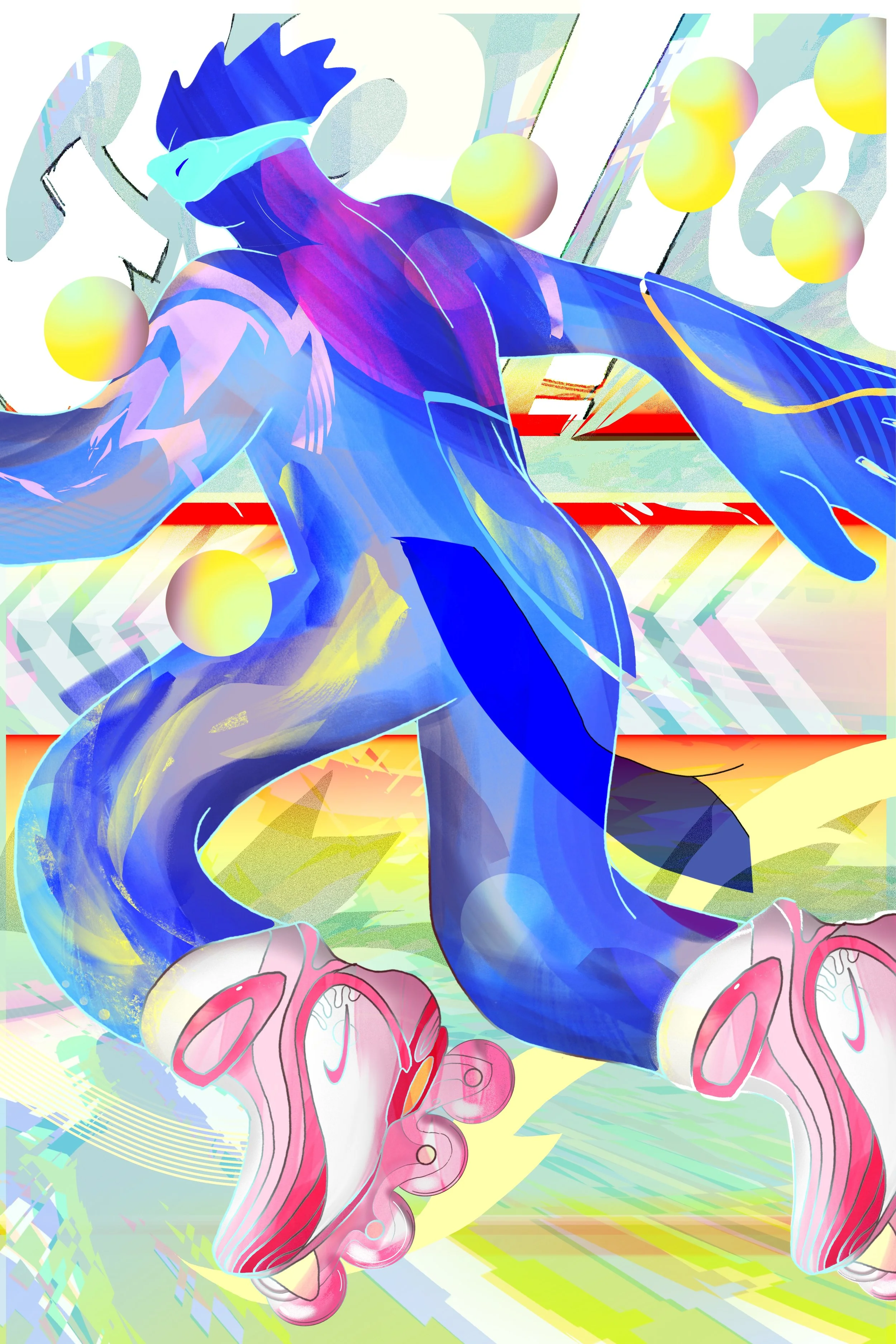 I was inspired by a music group called Cortis. Their song name is called Go, and there is so much energy in it that it made me think of sportsmanship and movement. I want to create a poster, potentially to advertise a new collection featuring Cortis.